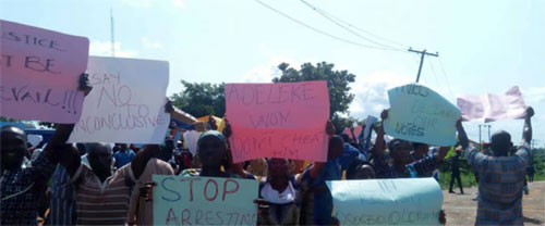 However, report from PUNCH has it that today’s protesters who stormed the venue were carrying placards with various inscriptions such as “No To rerun, “INEC don’t conspire with APC”; “The people spoke on Saturday, announce the results ” among others.